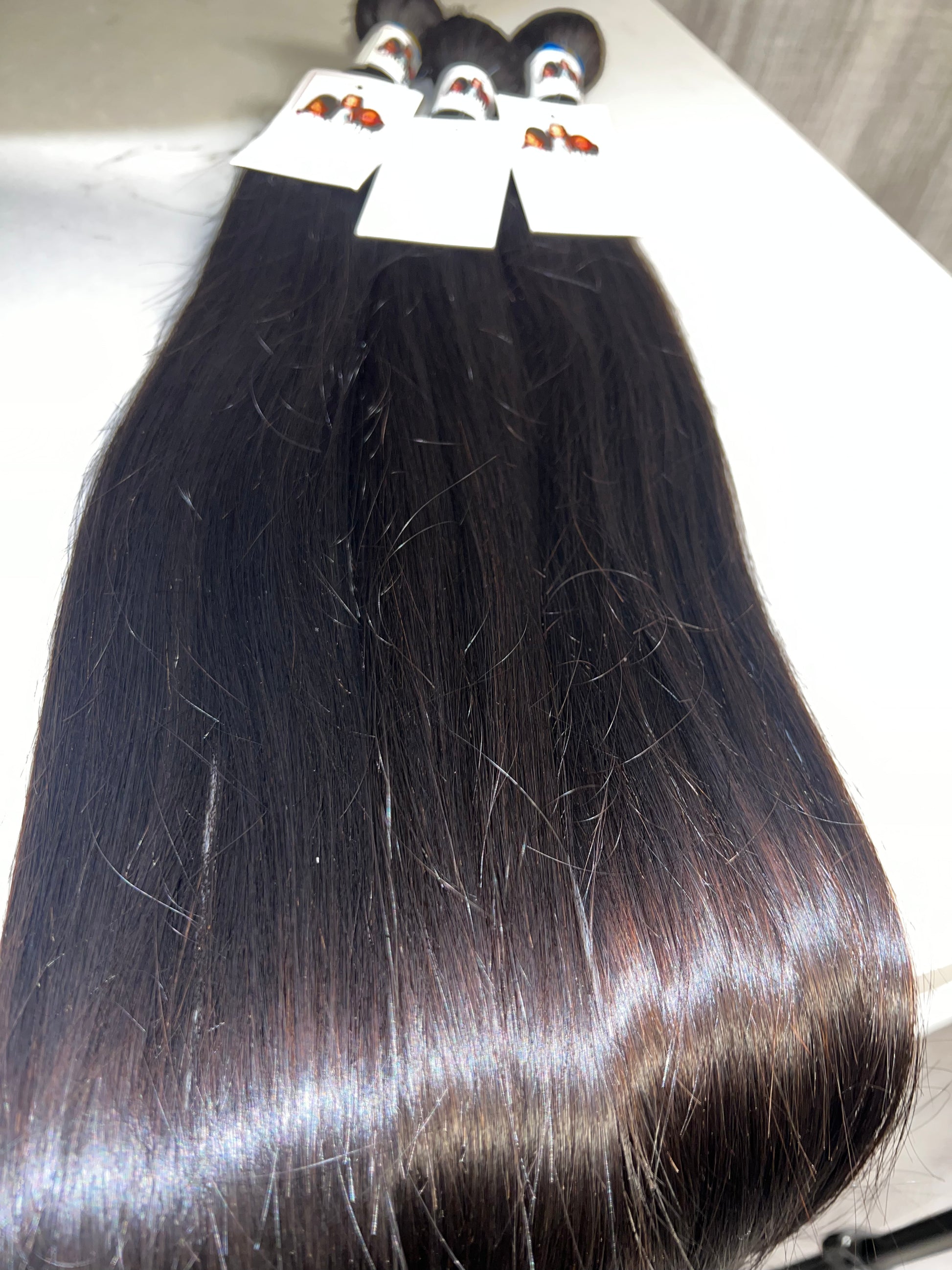 Our 12A Grade blue rubber band straight bundles are the highest quality of virgin hair. This hair is very silky and soft, it lasts 3-5 years. You can dye it to 613 blonde and other colors and it takes to heat extremely well.